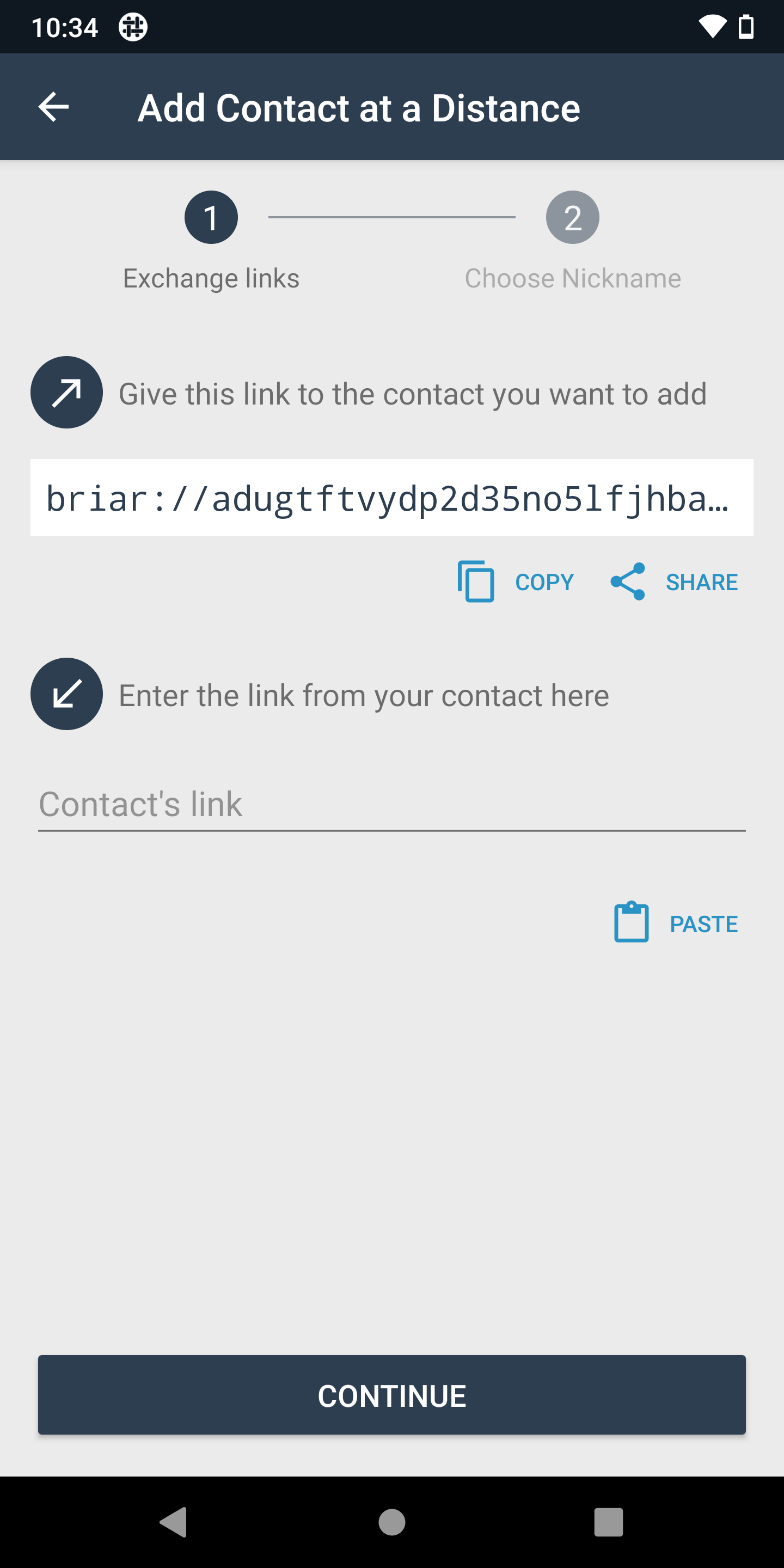 Most messenger apps find your contacts by uploading your phone’s contact list to a server. Since Briar is designed to protect metadata and contact relationships, it instead uses the Tor network to connect directly and securely to the person you’re adding, without revealing your contact list to anyone.